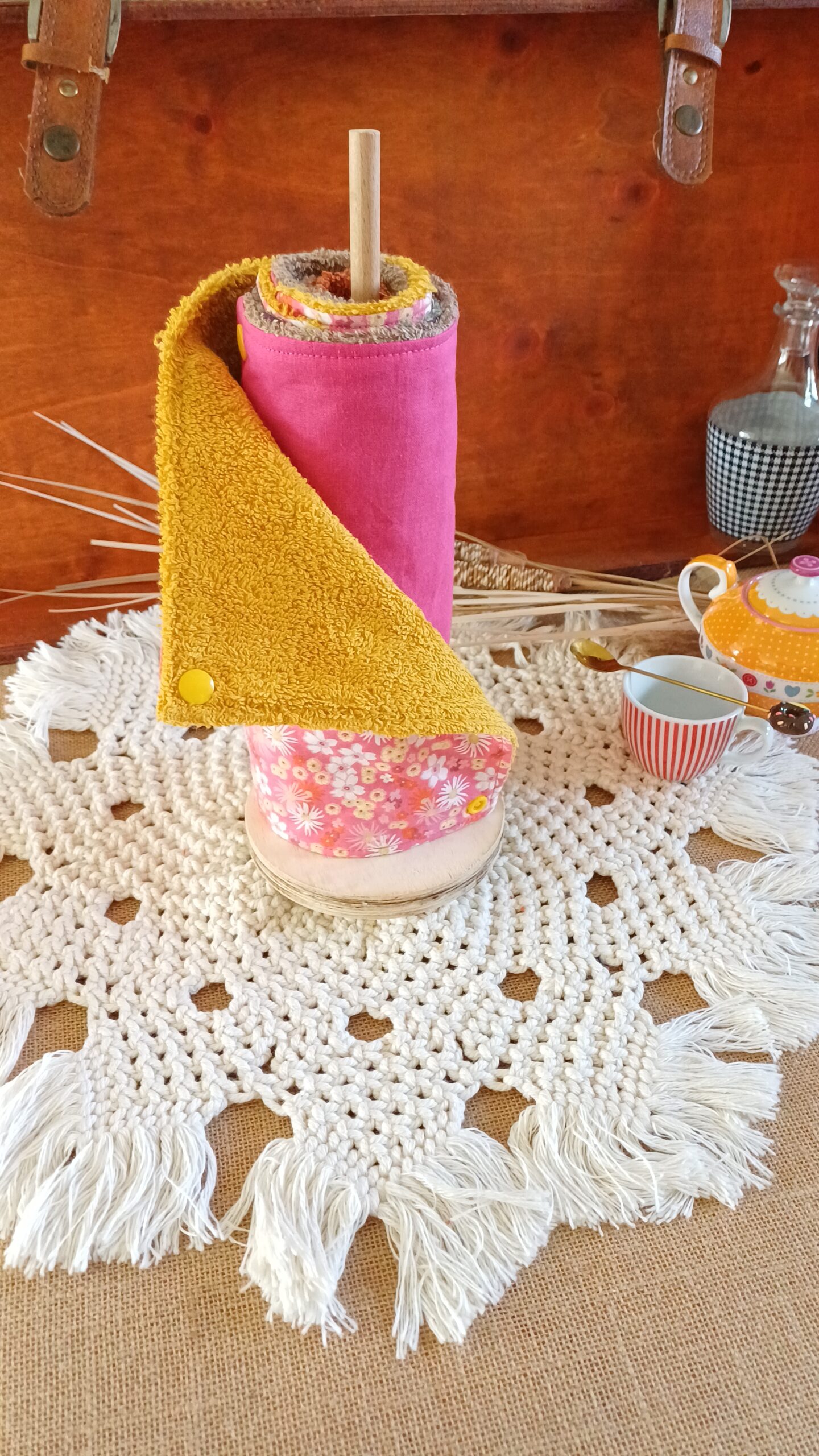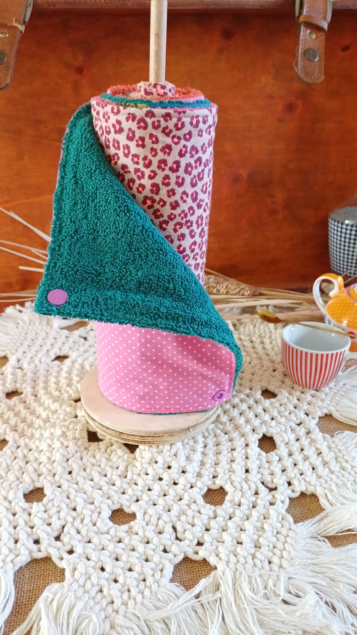 • Les pressions permettent de créer un rouleau autour de votre porte essuie-tout, comme un sopalin classique.